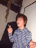 さてさて、ここからは今回のオマケの、打ち上げの様子。 左の写真は、あいちゃんのバンドFOUR TRIPSとa&pの集合写真(あれ?ノリちゃんがいない…)。 そして右の写真は、FOUR TRIPS vs a&pの腕相撲対決でのワン・シーン。 磯山くん、負けっぱなしでした…。 |
